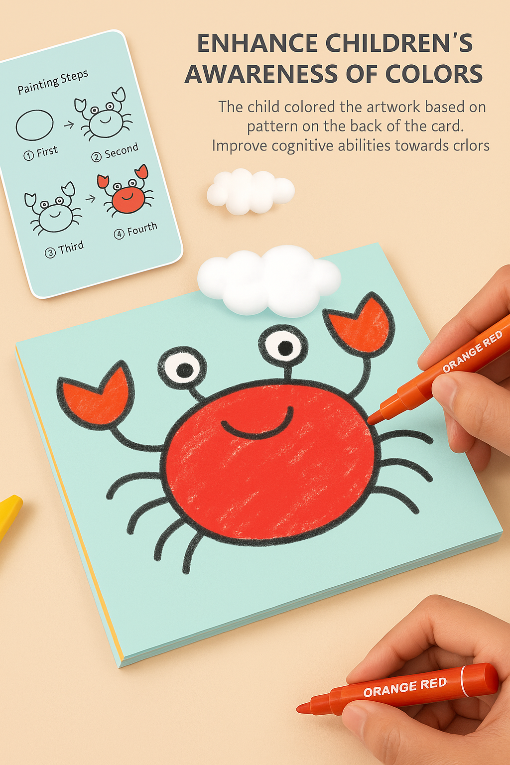 Kyablo Roblo™ isn’t just about drawing—it's about building color recognition and step-by-step creativity. With guided cards and vibrant crayons, your child learns how to complete pictures while boosting cognitive and visual skills in the most fun way possible.